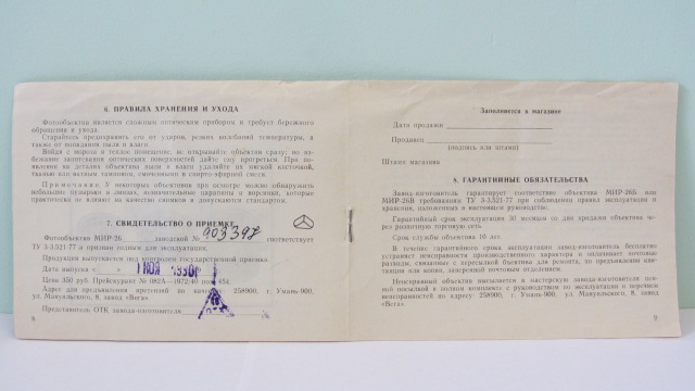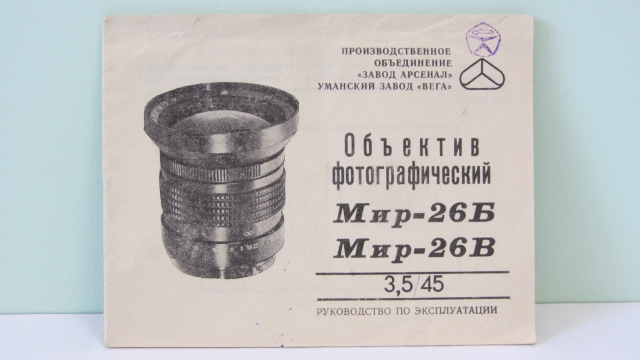 Продам Паспорт для объектива Мир-26Б, В 3, 5/45 - Техническая литература