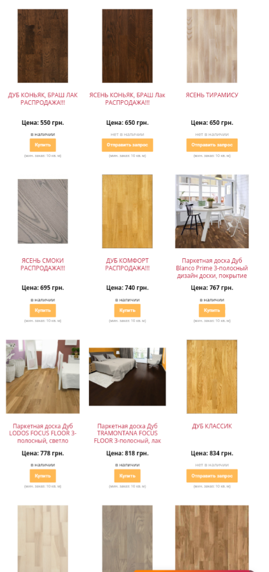 - На сайте предоставлен широкий ассортимент напольного покрытия с доставкой по г. Киев и Украина.