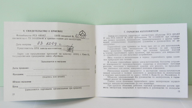 Продам Паспорт для объектива SHIFT ARSAT H, М 2, 8/35 (МС МИР -67 Н, М) - Техническая литература