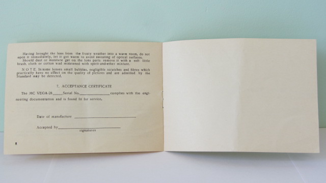 Продам Паспорт для объектива МС ВЕГА-28Б, В 2, 8/120 - Техническая литература