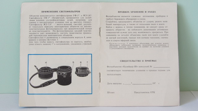 ДЛЯ ОБЪЕКТИВА Калейнар-3Б,В 2,8/150