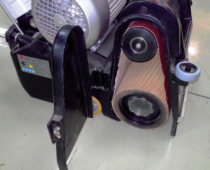 Изменяющиеся радиусы кривизны натяжения шкурки по всей ее длине обеспечивают самоочищение шлифовальной ленты от древесных отходов в процессе работы. Специальное резиновое покрытие барабана увеличивает срок службы шлифовальной шкурки и повышает качество обработки пола. Давление барабана на обрабатываемую поверхность регулируется винтом и пружиной.