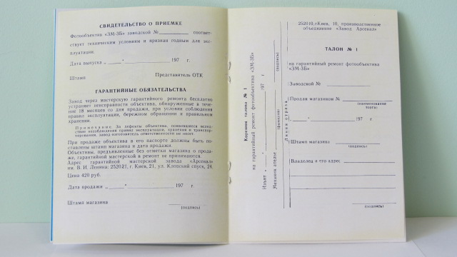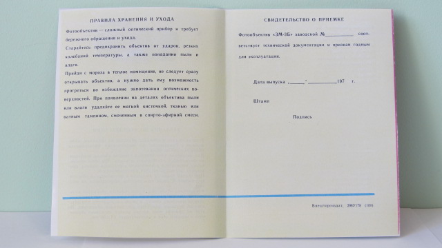 ДЛЯ ОБЪЕКТИВА ЗМ-3Б 8/600