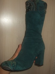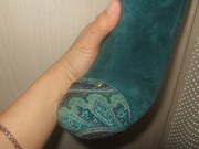 Продам шикарные женские сапоги изумрудно -зеленые замша р.38 - Женская одежда