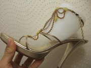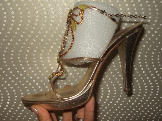 Продам шикарнейшие женские босоножки. Цвет золото с камнями и стразами Swarovsky. Р 38. Каблук шпилька 10 см. Состояние 4. Родная набойка. Одевались 1 раз на свадьбу. Покупала за 350 у.е. Фирма Podium Italia. Натуральная кожа. Очень утонченные, женственные, с металлическими цепочками, выглядят как будто на ваших ножках браслеты. Босоножки на выход, на свадьбу, на выпускной или просто на любой праздник и каждый день, ведь жизнь – это праздник каждый день, особенно когда мы творим добро. 0679787068 |