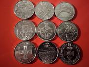 Набір 9 монет Збройні сили України 10 грн 2018 2019 2020 років в капсулах Захисникам Донецького аеропорту Кіборгам Донь Добровольця 100 років Військово-морському флоту України Військовим медикам Учасникам бойових дій на території інших держав Краз-6322 Солдат Повітряні сили України День памяті полеглих захісників України Державна Прикордонна служба України |