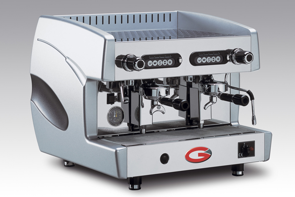 Полуавтомат с подачей кофе через электроклапан. Кнопочная группа подачи кофе для установки дозировки кофе. Теплообменник в бойлере. Термосифонная циркуляция позволяет поддерживать постоянную температуру в группе подачи кофе.