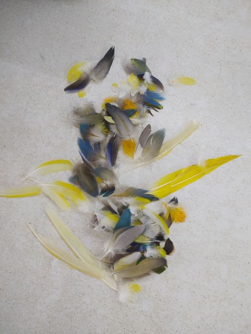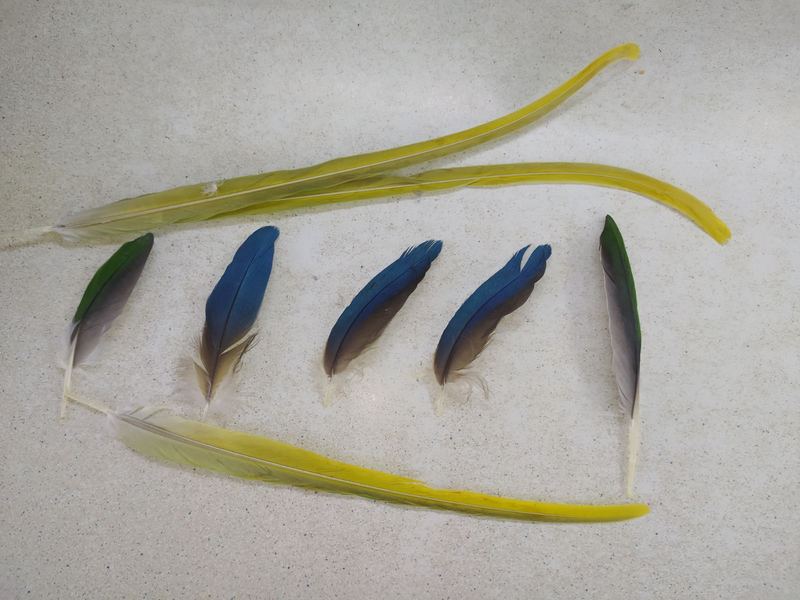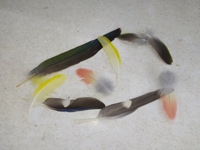 Перо попугая. Яркие, разноцветные перья попугаев, разных размеров - Птицы