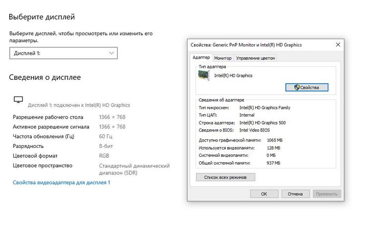 Видеокарта Intel HD Graphics 500