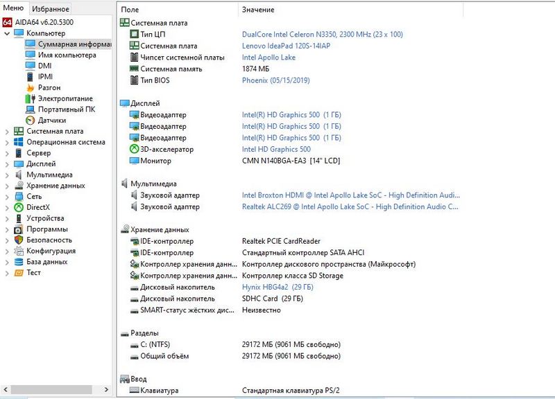 Процессор Intel Celeron N3350 (1.10 - 2.40 ГГц)