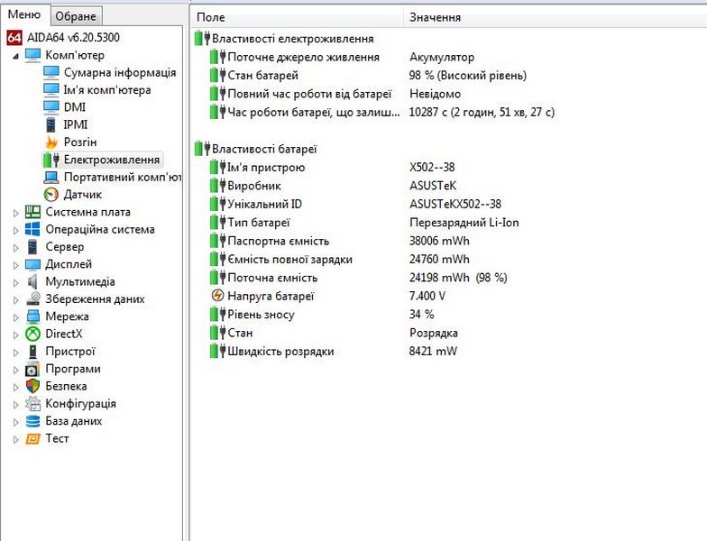 Ноутбук ASUS X502CA Состояние внешнее хороше трещин сколов нет. Технически все работает отлично без нюансов.Состояние батареи и SSD есть на фото. SSD еще на гарантии больше 2 лет. Комплект ноутбук зарядка. Цена без торга! Диагональ экрана 15.6" (1366x768) WXGA HD Процессор Intel Celeron 1007U (1.5 ГГц) Объем оперативной памяти 4 ГБ Объём SSD 120 ГБ Видеокарта Intel HD Graphics Дополнительные возможности Веб-камера HD Встроенный микрофон Сетевые адаптеры Wi-Fi 802.11 b/g/n Bluetooth 4.0 Gigabit Ethernet Разъемы и порты ввода-вывода 1 порт USB 3.0, 1 порта USB 2.0, VGA, HDMI, RJ-45 (LAN), вход для микрофона, выход на наушники, линейный вход, кардридер 2-в-1 Батарея Литий-ионная, 2-ячеечная, 5136 мА ч Габариты 383 x 253 x 21.7 мм Вес 1.86 к Цвет Черный |
