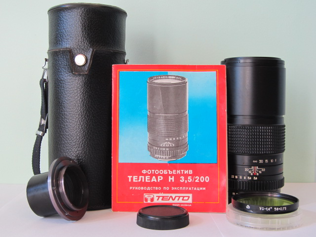 Объектив длиннофокусный ТЕЛЕАР Н,М 3,5/200 мм с сменными адаптерами: