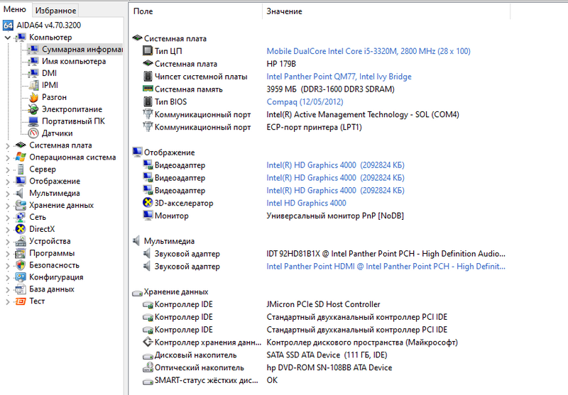 Ноутбук HP EliteBook 8470p Состояние внешнее хорошее следы использования не значительные. Технически все работает отлично. Состояние аккумулятора и SSD есть на фото. Комплект ноутбук батарея зарядка. Цена без торга! Диагональ экрана 14 (1366x768) HD+ Процессор Intel Core i5-3320M (2.6 ГГц) Объем оперативной памяти 4 ГБ Объём SSD 120 ГБ Видеокарта Intel HD Graphics 4000 Оптический привод DVD+/-RW Дополнительные возможности Веб-камера 720p Встроенный микрофон Сканнер отпечатка пальца Клавиатура с защитой от попадания жидкости Сетевые адаптерыWi-Fi 802.11 a/b/g/n Gigabit Ethernet Разъемы и порты ввода-вывода ExpressCard/54, 2 порта USB 3.0, 1 порт eSATA/USB 2.0, 1 порт USB 2.0 с поддержкой PowerShare, VGA,/DisplayPort, EEE 1394a, RJ-45 (LAN), выход на наушники, микрофонный вход, кард-ридер, разъем для подключения док-станции Бтарея Литий-ионная, 6-ячеечная Габариты 338 x 231 x 34 мм Вес 2.07 кг |