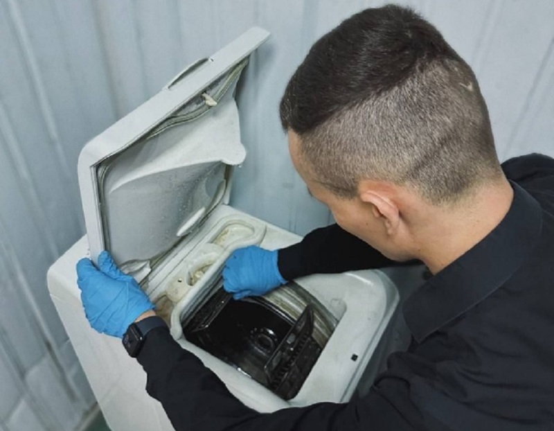 Команда досвідчених майстрів займається ремонтом пральних машин.