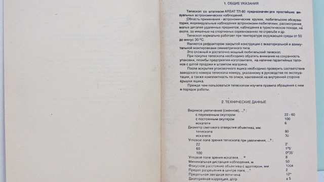 Продам Руководство по эксплуатации ТЕЛЕСКОП ARSAT ТЛ-80.Новый !!! - Техническая литература
