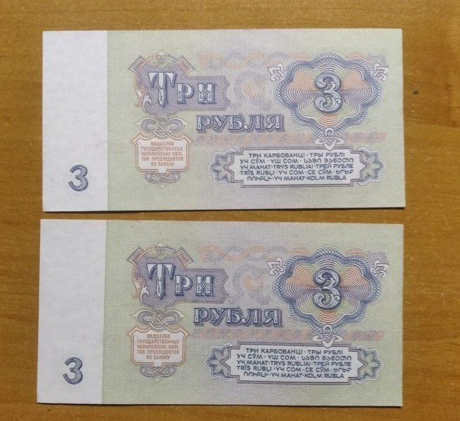 3 рубля 1961 год, номера подряд Две банкноты СССР 1961 года номера подряд. Состояние указано на фотографиях. Цена указана за 2 Банкноты. |