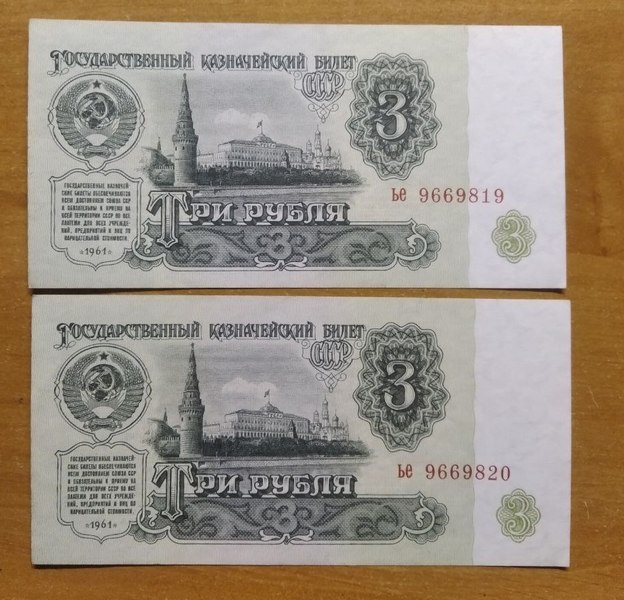 3 рубля 1961 год, номера подряд - Прочий антиквариат