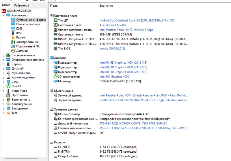 Ноутбук Acer Aspire E1-570G Состояние внешнее хорошое есть следы использования ни чего критического. На работу не влияют. Технически все работает отлично. Состояние батареи и HDD есть на фото. Комплект ноутбук батарея зарядка. Цена без торга! Діагональ екрану 15.6 (1366x768) LED Процесор Intel Core i3-3227U (1.9 ГГц) Оперативна пам'ять 8 ГБ DDR3L Об'єм HDD 500 ГБ Відеокарта Intel HD Graphics 4000 Дискретна відеокарта Nvidia GeForce GT 740M ( 2 ГБ) Додаткові можливості Веб-камера HD 1 Мп Вбудований мікрофон Безпровідний зв'язок Wi-Fi 802.11 b/g/n Bluetooth Gigabit Ethernet Разъемы и порты ввода-вывода 2 x USB 2.0, 1 x USB 3.0, 1 x HDMI,Аудиоразъем Батарея 4-осередкова Габарити 381 x 256 x 25.3 мм Вага 2.35 к |