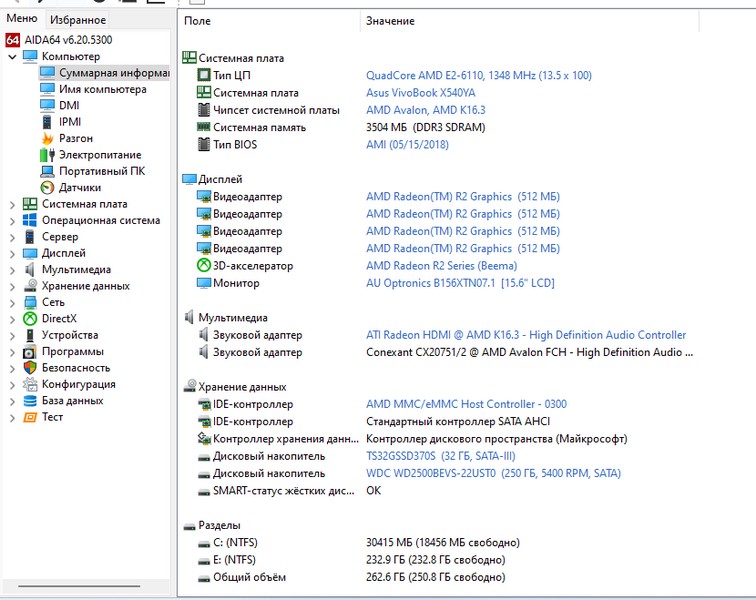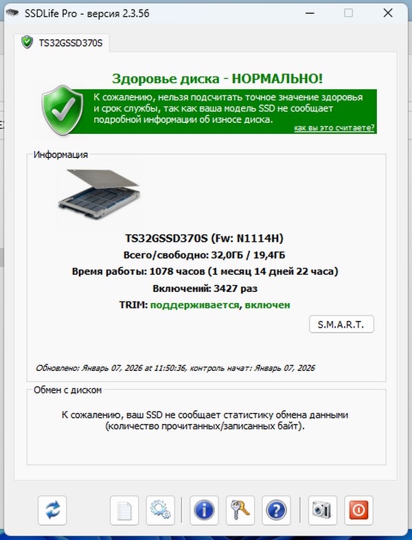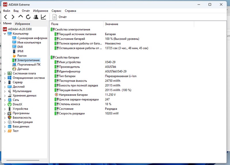 Состояние Батареи SSD, HDD есть