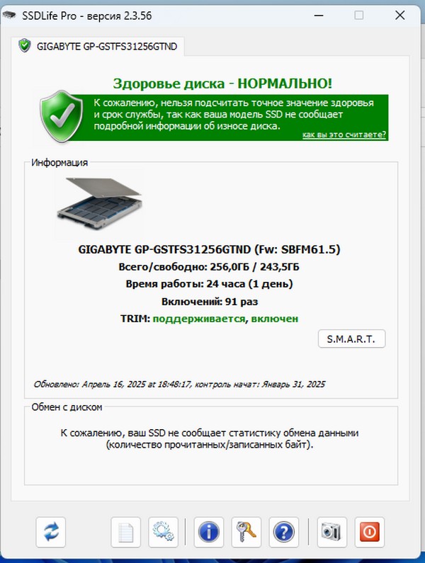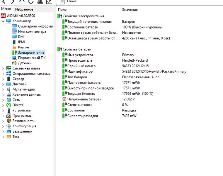 Состояние аккумулятора и SSD есть