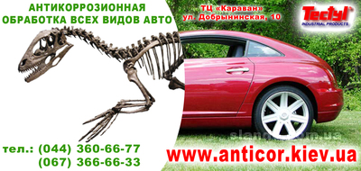 Антикоррозийная обработка Антикоррозийная обработка всех видов авто.Материал Tectyl(тектил,Нидерланды).Установка подкрылок колёсных арок и защиты двигателя. (067)366-66-33 ; (044)360-66-77 WWW.anticor.kiev.ua |