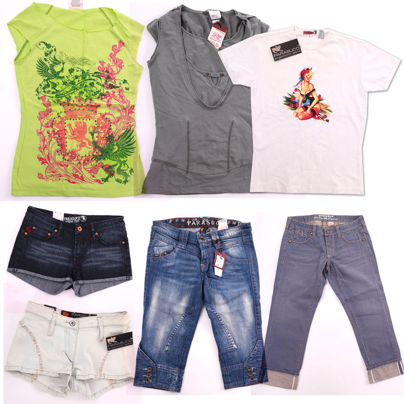 Одежда известной марки Parasuco. В ассортименте: джинсы, юбки, бермуды, футболки, топы, свитера, рубашки, тонкие куртки. Этот бренд стал всемирно известным благодаря уникальной отделки ткани и оригинальному моделированию. Предлагает покрой одежды с использованием замысловатых аппликаций, вышивок, заклепок и кнопок. Эти великолепные модели Вы сможете приобрести уже от 3,70€. Всю необходимую информацию Вы сможете найти на нашем сайте. www.inter-grosshandel.com или посетив наш склад в г. Тюбинген. |