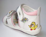 Детская летняя обувь из натуральной кожи с супинатором, высоким задником, на регуляторах-липучках с интересным дизайном (вышивка в виде цыплят). В самую жаркую погоду ножка будет надежно зафиксирована, хорошо проветриваться. Пересылаю. 0951315914 maracus@mail.ru |