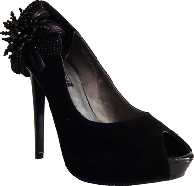 Туфли чёрные замшевые с открытыми мысами, цветками, на шпильке и скрытой платформе (36 размер). |