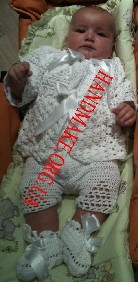Ажурный вязанный крестильный комплект для малютки - комбинезончик,кофточка,пинетки. 100% хлопок, ручная вязка. Возможно выполнение по индивидуальному дизайну. Цена 699 грн. Доставка по Украине бесплатно! http://www.handmake.org.ua/20-vyazannyj-krestilnyj-komplekt-dlya-malyutki.html Тел. (063)698-3698 |