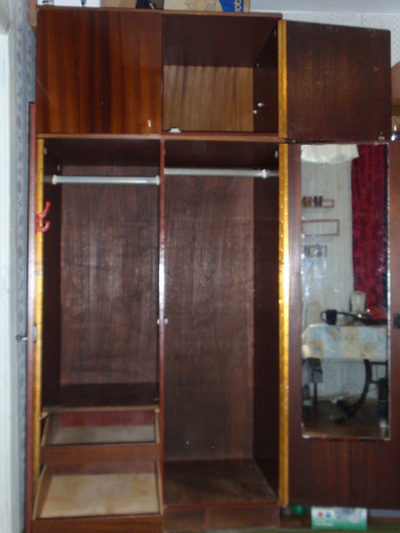 шкаф 80-х годов из дерева в хорошом состоянии, на двери большое зеркало. Двери закрываються на ключ (ключи имеються) |