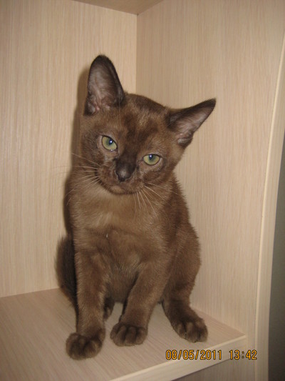 Питомник ELLENART предлагает бурманскую кошку окраса соболь (коричневая). Девчушка будет готова к переезду к середине июня. Мама чемпион породы, папа импорт - америка. |
