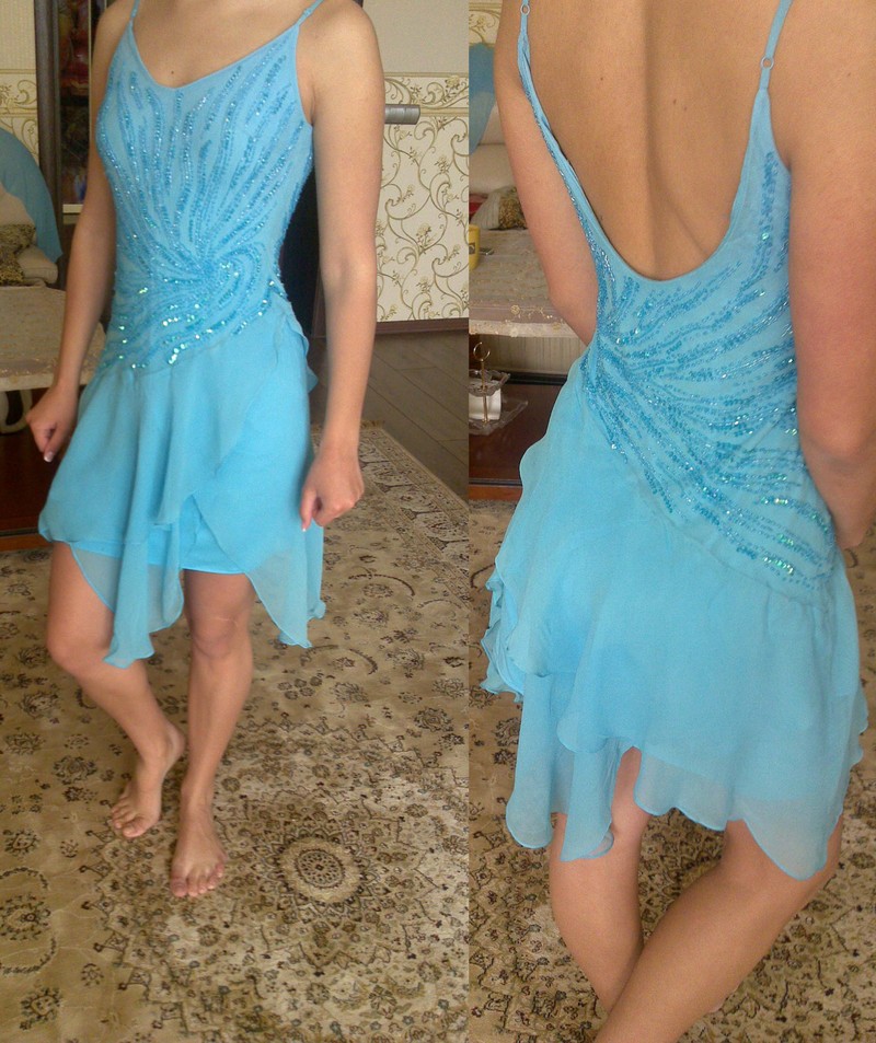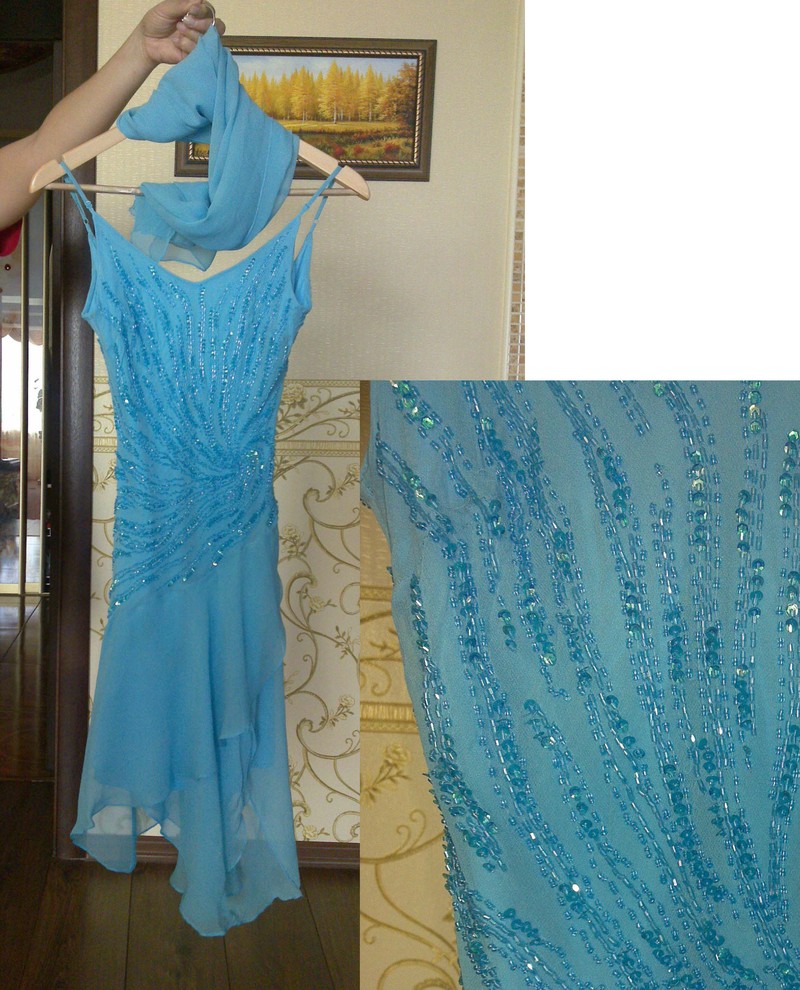 Продам дёшево выпускное платье! 100% шёлк, ручная вышивка бисером. Цвет - голубой. Платье на бретельках и с красивым вырезом на спине, длина - чуть выше колен. Размер - S. Также в комплекте шёлковый шарфик, который можно, как накинуть на плечи, так и завязать на шее. При покупке этого платья - клатч, серьги и колье в подарок!!! |