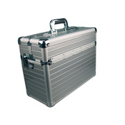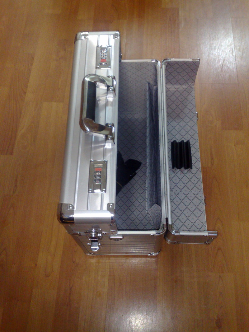 Кейс (чемодан, кофр) металлический, материал алюминий. На кодовом замке. Размер 45х33х23см. Очень стильный и функциональный. Легко помещается внутри 2 толстые папки скоросшивателя. Серебристый цвет. |