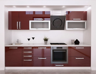 Кухня hi-tech в цвете "Бордо глянец" - Мебель для кухни