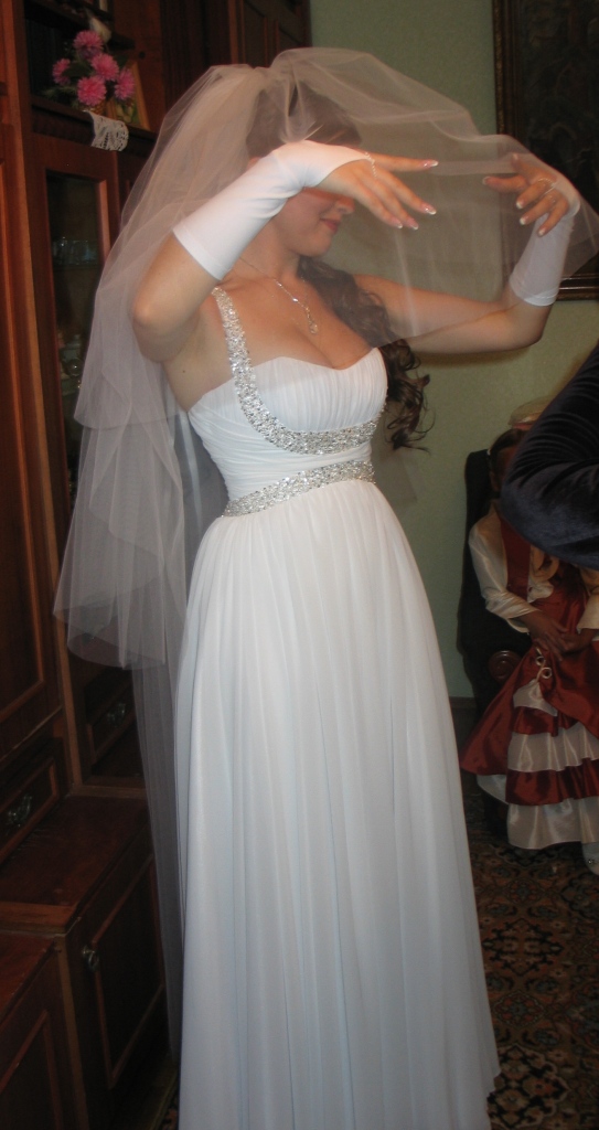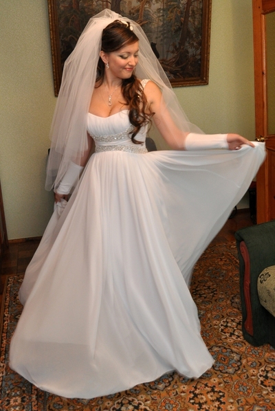 Продам изысканное свадебное платье в греческом стиле. Платье белоснежное, после чистки, в отличном состоянии. Было в использовании только 1 раз. Мой размер 38 европейский, но подойдет девушкам в большем и меньшем размере. Фасон платья подойдем девушкам любой комплекции. Прямой силуэт, сзади шнуровка, расшитое бусинками. Платье на рост до 174см. Идеально подходит также невестам в положении. К платью прилагаются перчатки в подарок. Цена: 2000 грн. Торг уместен. Контакты: 0500746983 (Таня), podobinska@yahoo.com |