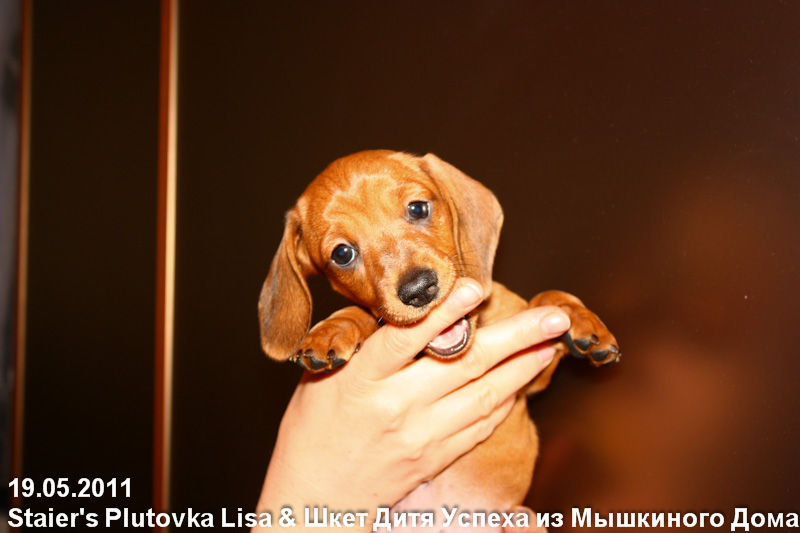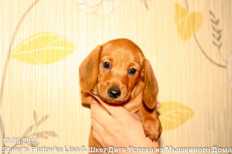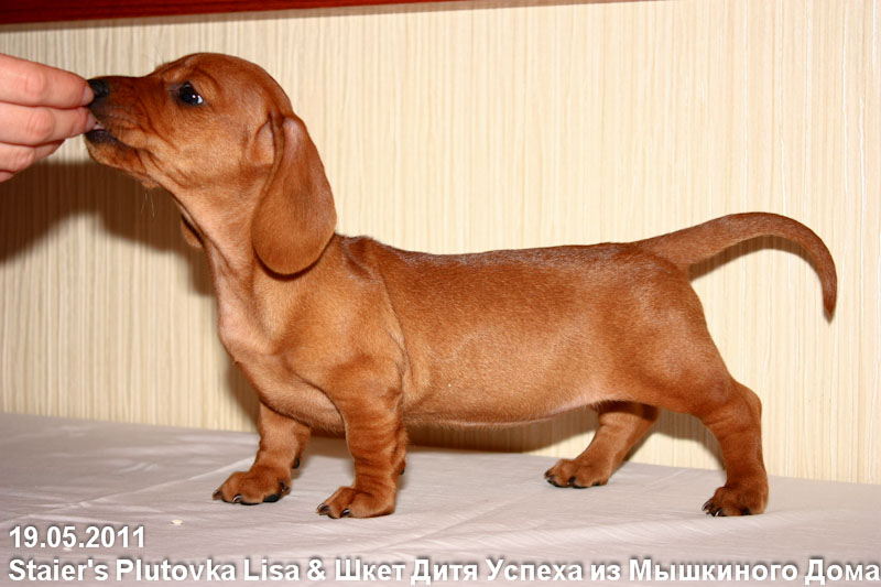 Продаются щенки таксы миниатюрной (карликовой). Дата рождения 07.04.2011г. Четыре ярко рыжие девочки и один рыжий мальчик(одна девочка и мальчик зарезервированы). Отец: Шкет Дитя Успеха из Мышкиного Дома (Чемпион России, Юный чемпион России). Мать: STAIERS PLUTOVKA LISA (Юный Чемпион Украины). Полный пакет документов(щенячья карточка,прививки, ветпаспорт,клеймо) Щенки будут готовы к переезду в новые семьи в первых числах июня. |
