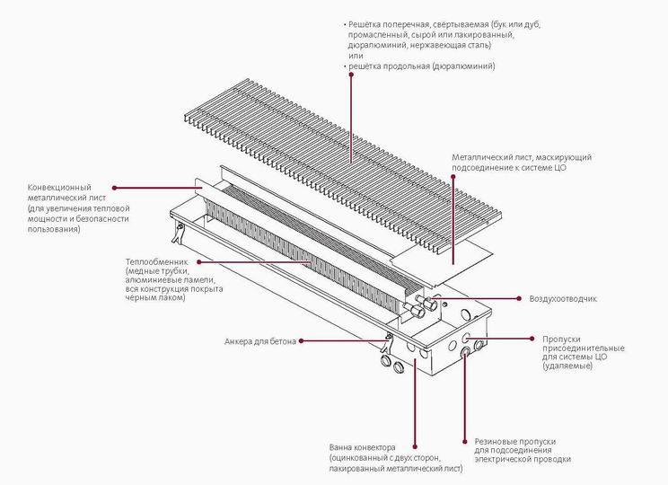 Канальные радиаторы JAGA предназначены для установки в обогреваемых полах помещений. Они состоят из медно-алюминиевого теплообменника, стандартно окрашенного в чёрный цвет, установленного в стальной ванне, оцинкованной с двух сторон и стандартно окрашенной также в чёрный цвет. Сверху радиатор предохранён поперечной или продольной маскировочной решёткой, изготовленной из выбранного материала. Подсоединение теплообменника к системе осуществляется через два отверстия с внутренней резьбой Р ½". Имеется возможность подсоединения радиатора как справа, так и слева. Канальные радиаторы всех типов лучших производителей по оптимальным ценам только от компании "Просторы Украины". Качество, доставка, вся продукция сертифицирована.